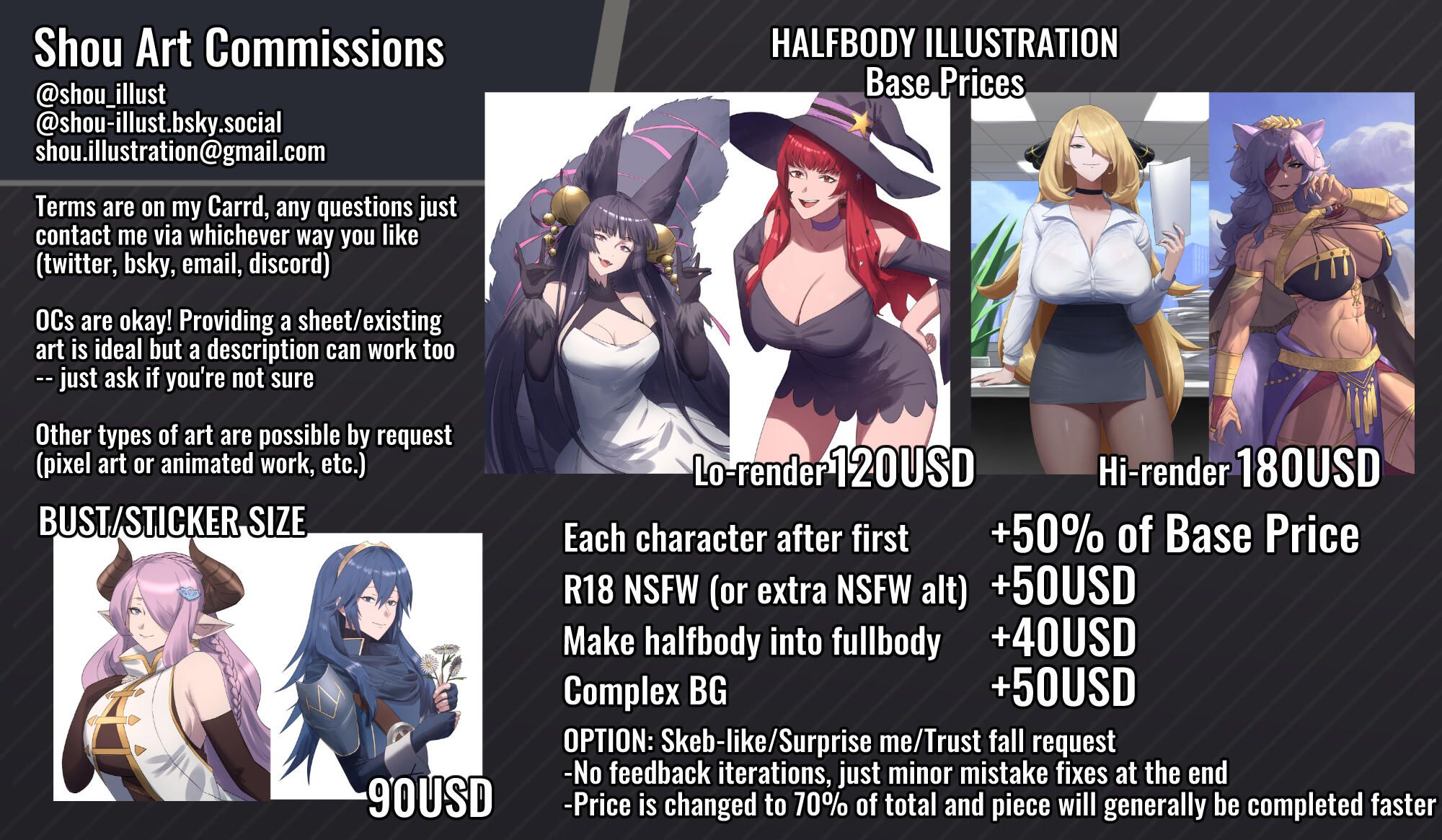 Contact form for commissions and questionsPlease make ABSOLUTELY sure you include correct contact info!